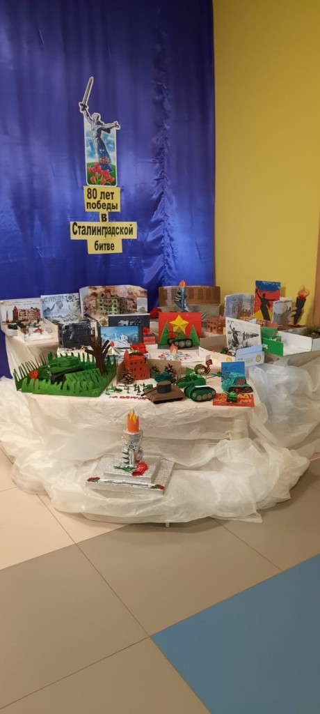 В преддверии 80-летия Сталинградской битвы в группе "Ягодки" была организованна мини выставка детско-родительских рисунков и поделок к юбилейной дате. Прошла беседа о событиях Сталинградской битвы, совместно с детьми рассматривали альбом "Детям о войне". Воспитанник группы Михаил Шилин сделал поделку своими руками и посвятил её своему деду - танкисту Краснову Василию Николаевичу.