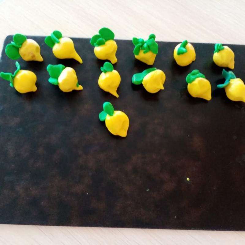Сегодня в группе "Ягодки" дети лепили репку. Вот что у нас получилось!
