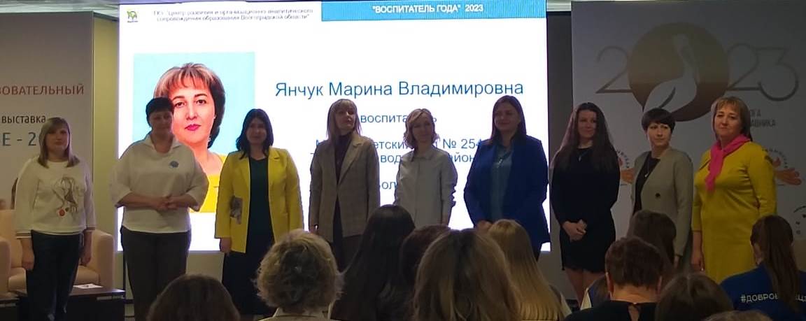 Делюсь с вами приятной новостью! Я являюсь участником регионального конкурса "Воспитатель года", и я - в десятке лучших. 23 марта на XVI Волгоградском образовательном форуме "Образование-2023" состоялось подведение итогов первого заочного тура регионального профессионального конкурса "Воспитатель года" 2023. В рамках работы Форума во время панельной дискуссии "Воспитатель года: от участия к победе" были представлены все 21 участницы конкурса из разных районов и городов нашего региона и объявлены десять победителей первого этапа. Очный формат конкурсных испытаний пройдет на базе детского сада Краснооктябрьского района Волгограда с 17 по 21 апреля. Держите за меня кулачки!