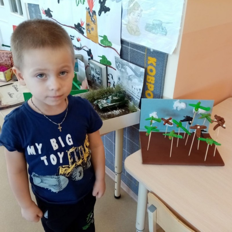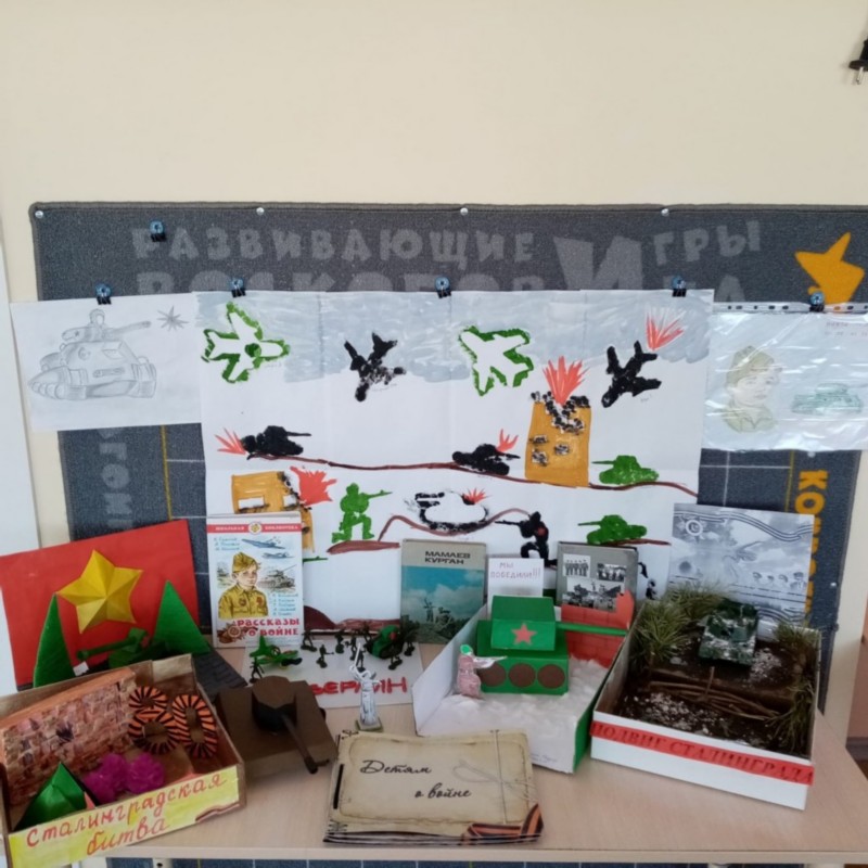 В преддверии 80-летия Сталинградской битвы в группе "Ягодки" была организованна мини выставка детско-родительских рисунков и поделок к юбилейной дате. Прошла беседа о событиях Сталинградской битвы, совместно с детьми рассматривали альбом "Детям о войне". Воспитанник группы Михаил Шилин сделал поделку своими руками и посвятил её своему деду - танкисту Краснову Василию Николаевичу.