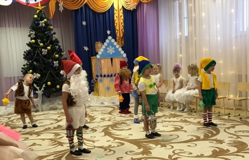 В группах "Ягодки" и "Ромашки" прошёл новогодний праздник "Как кот Бегемот, известный шалун и проказник, бусинки с ёлки унес". Девочки-бусинки и мальчики-гномики помогали Белоснежке, Дед Морозу и Снегурочке проучить кота. Дети пели песни, танцевали и играли. Победила дружба и волшебство Деда Мороза!